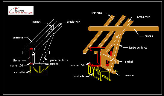 Nous offrons aussi, et surtout, des charpentes sur blochets, lesquels peuvent s'installer sur toutes sortes de murs ( pans de bois, industriel, béton....).