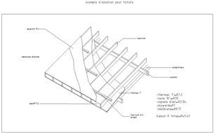 L'isolation peut se mettre entre les chevrons et sur leur hauteur. Il est également possible de le placer sur la hauteur totale des chevrons et des pannes, tout en laissant apparent le dessous des pannes ainsi que les fermes.