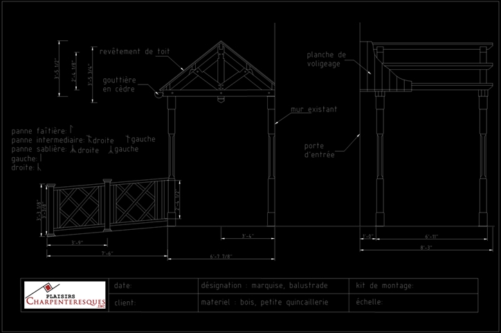 plan d'une marquise avec barrière réalisée avec LibreCAD